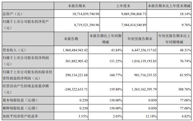 分季度来看,2020年第一季度至第三季度,以岭药业单季度分别实现营业总收入23.34亿元、21.53亿元、19.60亿元,同比分别增长50.56%、50.13%、43.84%;分别实现归母净利4.38亿元、2.76亿元、3.02亿元,同比分别增长51.88%、66.02%、151.25%,归母净利同比增速呈现逐季增加趋势,且第三季度单季度增长超过150%。