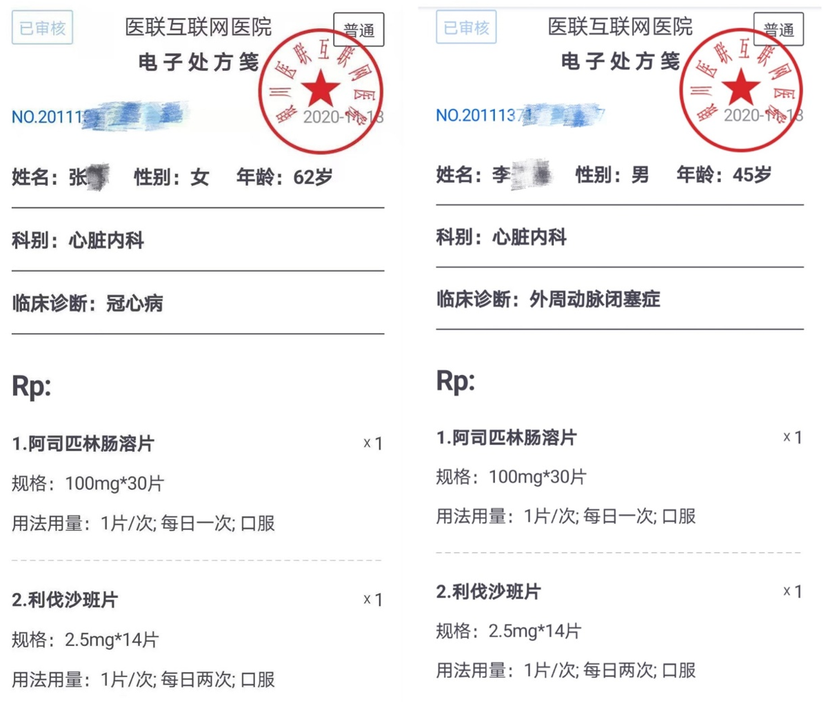 家住辽宁沈阳的张女士患有冠心病,11月13日,她在慢病管理平台医联上收到其主治医生郭医生开出的一张电子处方,与以往不同的是,这张处方上除了常用的阿司匹林,还增加了拜瑞妥®(利伐沙班片,2.5mg)。这是拜瑞妥®获批用于慢性冠状动脉疾病(CAD)或外周动脉疾病(PAD)后的首张电子处方,也是该药物获批新适应症后在中国的首张处方。