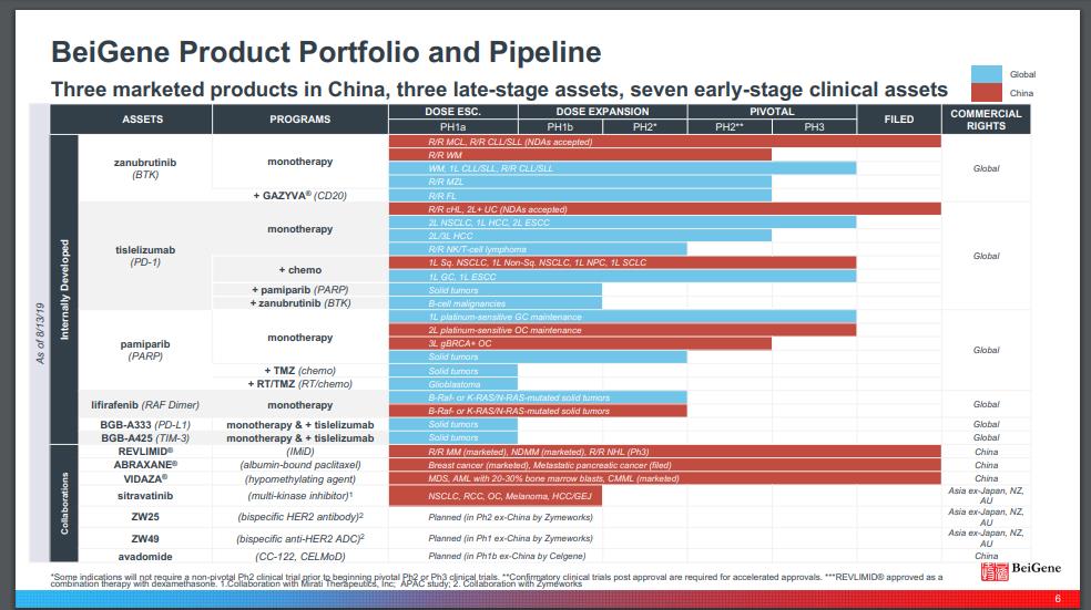 此外,百济神州的的产品管线中还有25款早期临床药物,其中包括抗肿瘤药物TIGIT、Bcl-2、OX40T,首创新药潜力的研究项目HPK1等8个拥有全球权益的药物,并在全球开展超70项临床研究,包括27项注册性临床试验,是目前中国开展全球临床试验最多的药企。