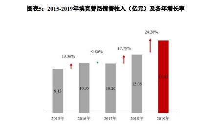根据贝达药业2020年半年报,截至报告期末,埃克替尼已用于超25万名晚期肺癌患者,其中服用埃克替尼持续生存五年以上的患者达1600人,累计销售突破80亿元,其仅在2019年就销售超127万盒,取得了超15亿元的销售收入,较2018年增长24.28%。