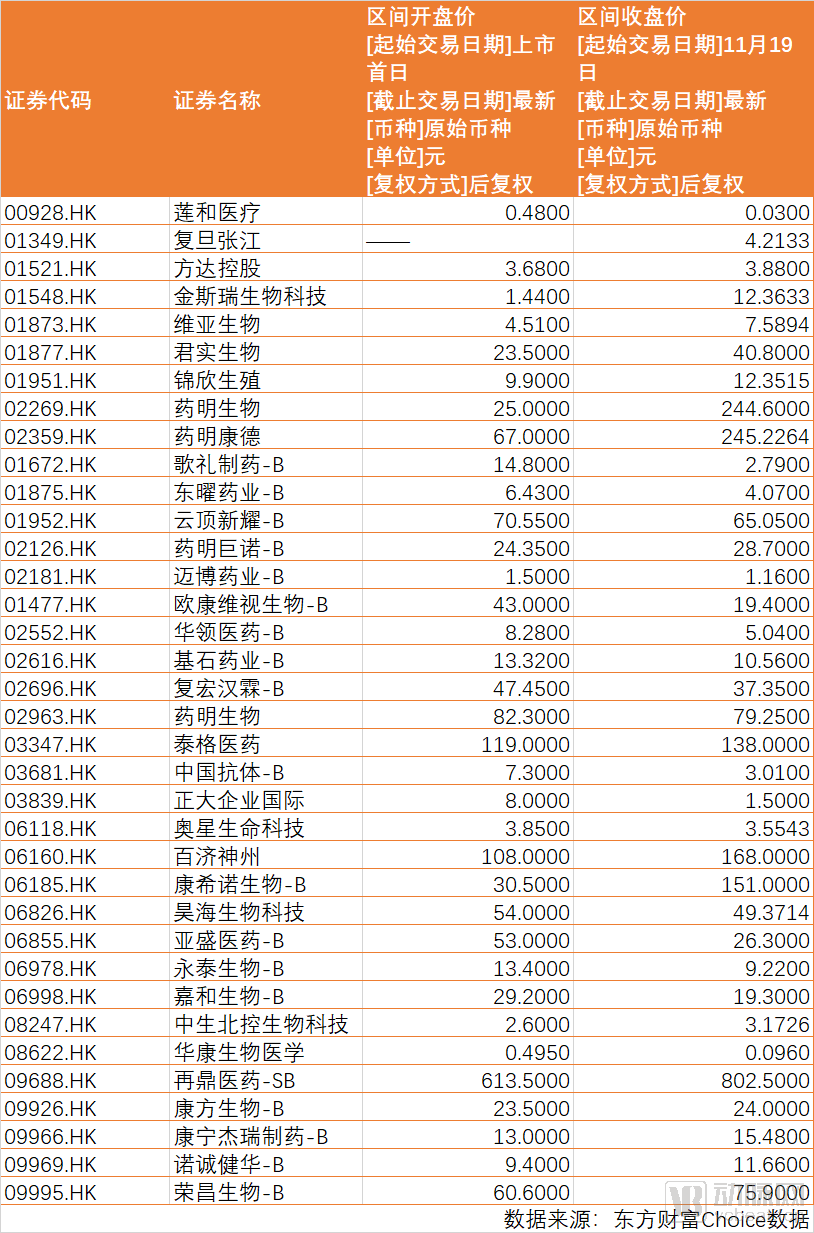 就在此前,赴港股上市的先声药业、药明巨诺这两只有着高瓴加持的生物医药企业接连破发。在港股上市的歌礼制药、开拓药业、云顶新耀等生物医药企业也持续跌跌不休,也有多家生物医药企业已大幅跌破发行价。