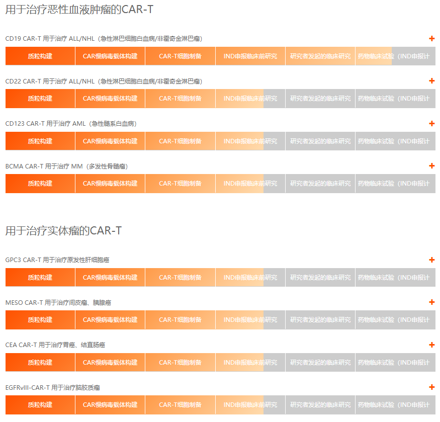 目前,华道生物CAR-T细胞制品生产全产业链生产体系,涵盖工程菌发酵、质粒纯化、病毒包装、病毒纯化、T细胞获得、T细胞转染和T细胞扩增收获冷冻等全部相关工艺,已完成符合GMP标准的CAR慢病毒载体工程化生产体系的开发,正在进一步完善自主知识产权的CAR-T细胞制备工程化制备体系的开发。