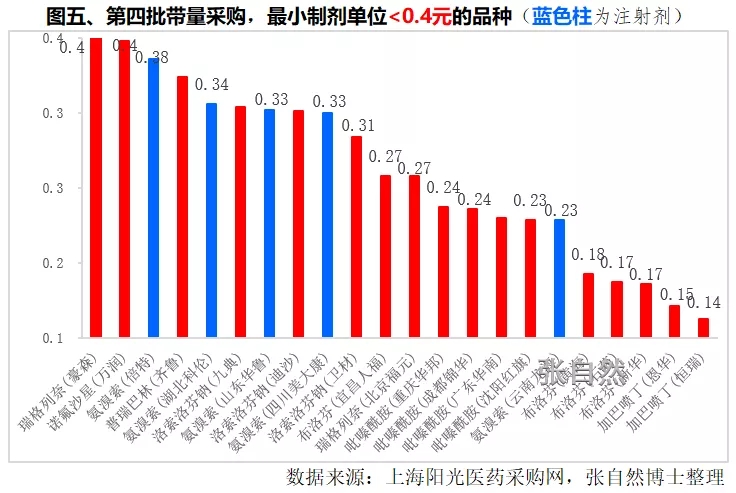 第二批和第三批集采时低于1毛钱中标的都各有31个,第三批时多家二甲双胍的中标价都在1分多钱,第二批时华中药业的对乙酰氨基酚也只有3分多钱,早在4+7扩围时最低中标价就已突破了角,利培酮1g(齐鲁)也只有5分钱。这也从另一个角度验证了本次的缓和。
