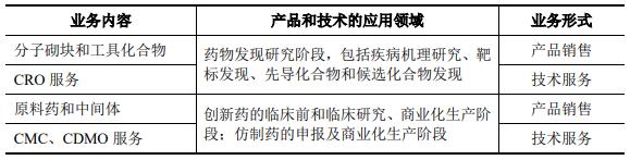 根据皓元医药科创板首次公开发行股票招股说明书(注册稿)(更新版)显示,其主营业务包括小分子药物发现领域的分子砌块和工具化合物的研究开发,以及小分子药物原料药、中间体的工艺研发和生产技术改进。具体的业务内容、应用领域及其对应的业务形式如下: