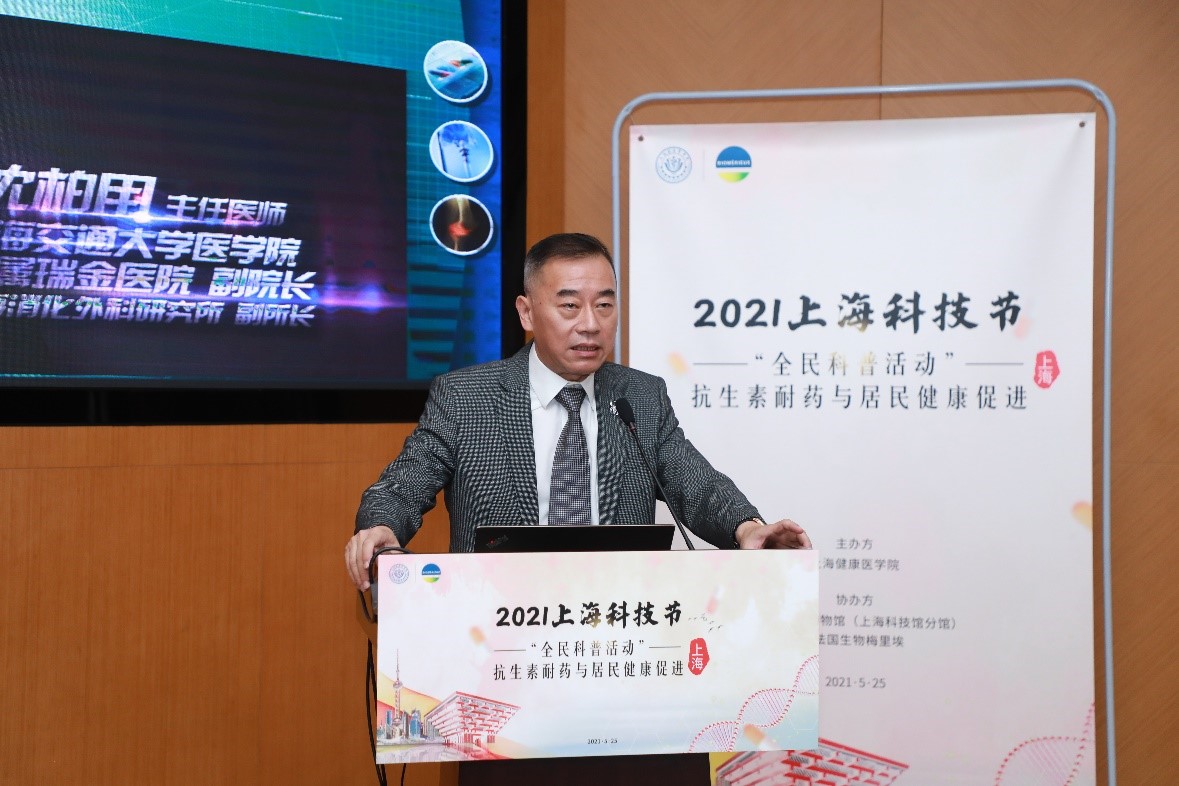 2021年5月25日,上海健康医学院(健康与公共卫生学院)邀请全国及上海知名医学专家,于上海自然博物馆(上海科技馆分馆)举行“2021上海科技节全民科普-抗生素耐药与健康促进”主题公益活动,就上海城市居民用药与抗生素耐药话题进行科普教育,推动上海市公共卫生行动计划,促进全民健康。本次活动是2021年上海科技节重点活动之一,也是今年科技节最主要的医学健康类公益科普活动,活动由上海健康医学院(健康与公共卫生学院)主办,上海自然博物馆(上海科技馆分馆)及法国生物梅里埃共同协办,活动得到上海市科委及市科技节组委的大力支持。