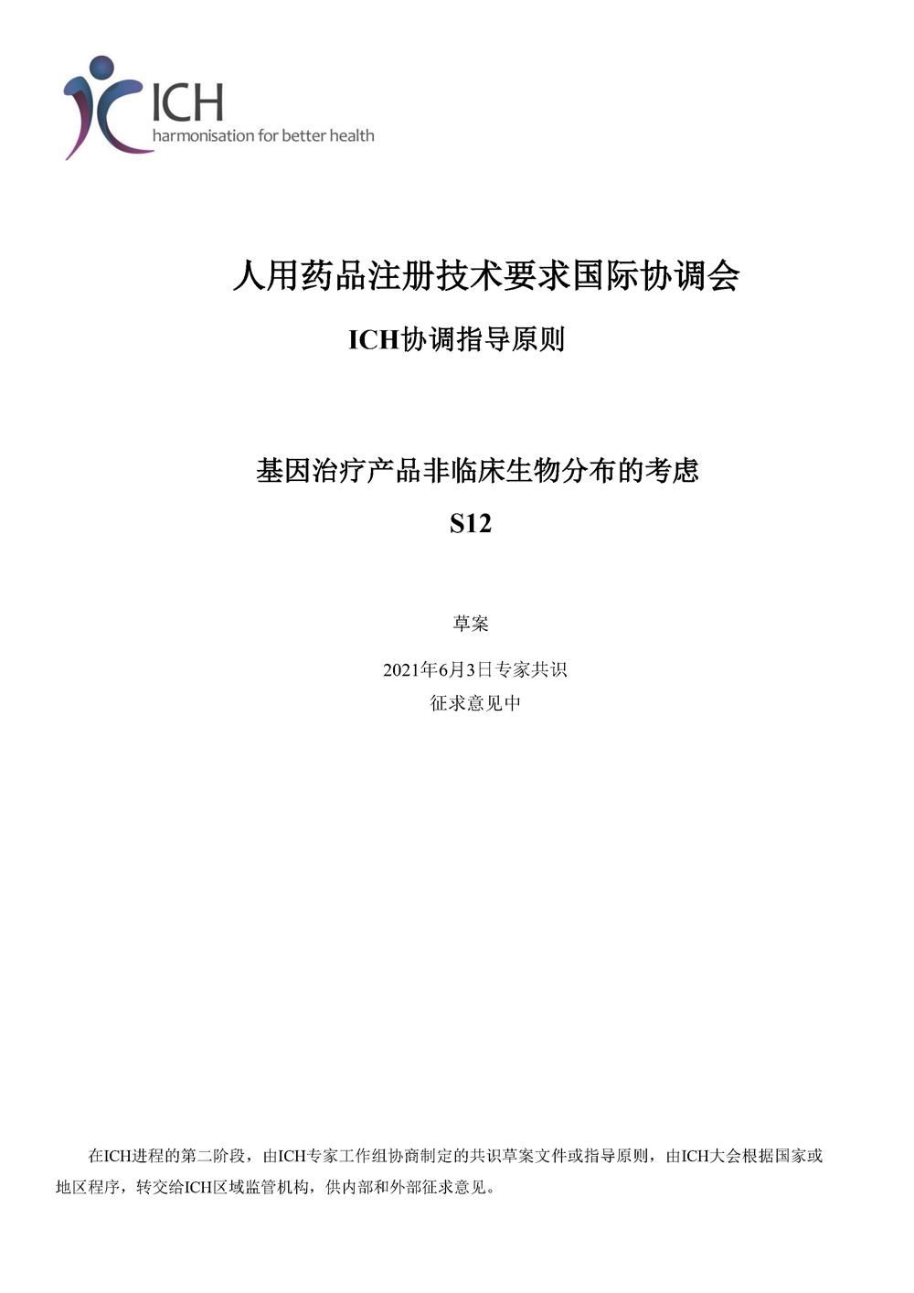 关于公开征求ICH指导原则《S12:基因治疗产品的生物分布研究》意见的通知