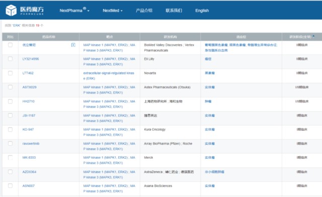 据医药魔方数据显示,目前全球尚无ERK激酶抑制剂获批上市,进展最快的项目处于临床II期阶段,包括优立替尼(BioMed Valley Discoveries/Vertex)、LY3214996(礼来)、LTT462(诺华)。