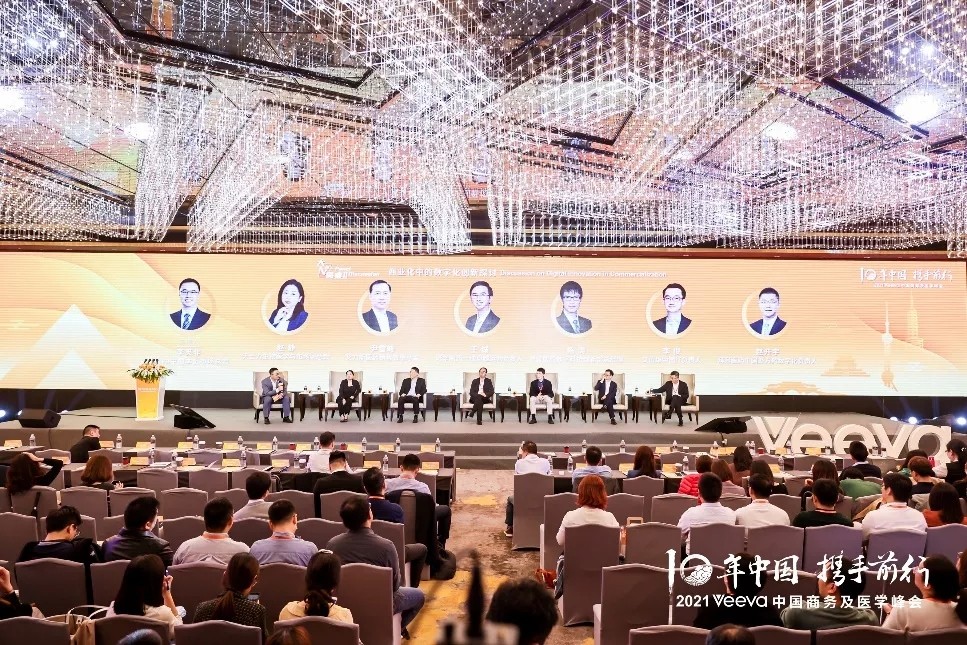 由Veeva中国本土市场总监李笑非担任主持人, 讨论嘉宾包括:天士力生物医学与市场副总裁赵静、艾力斯医药销售效率总监尹雪峰、诺华制药一线卓越运营负责人王诚、复星医药数字科技创新部总经理陈涛、艾伯维中国IT负责人李俊、拜耳医药中国处方药数字化负责人赵开宇。