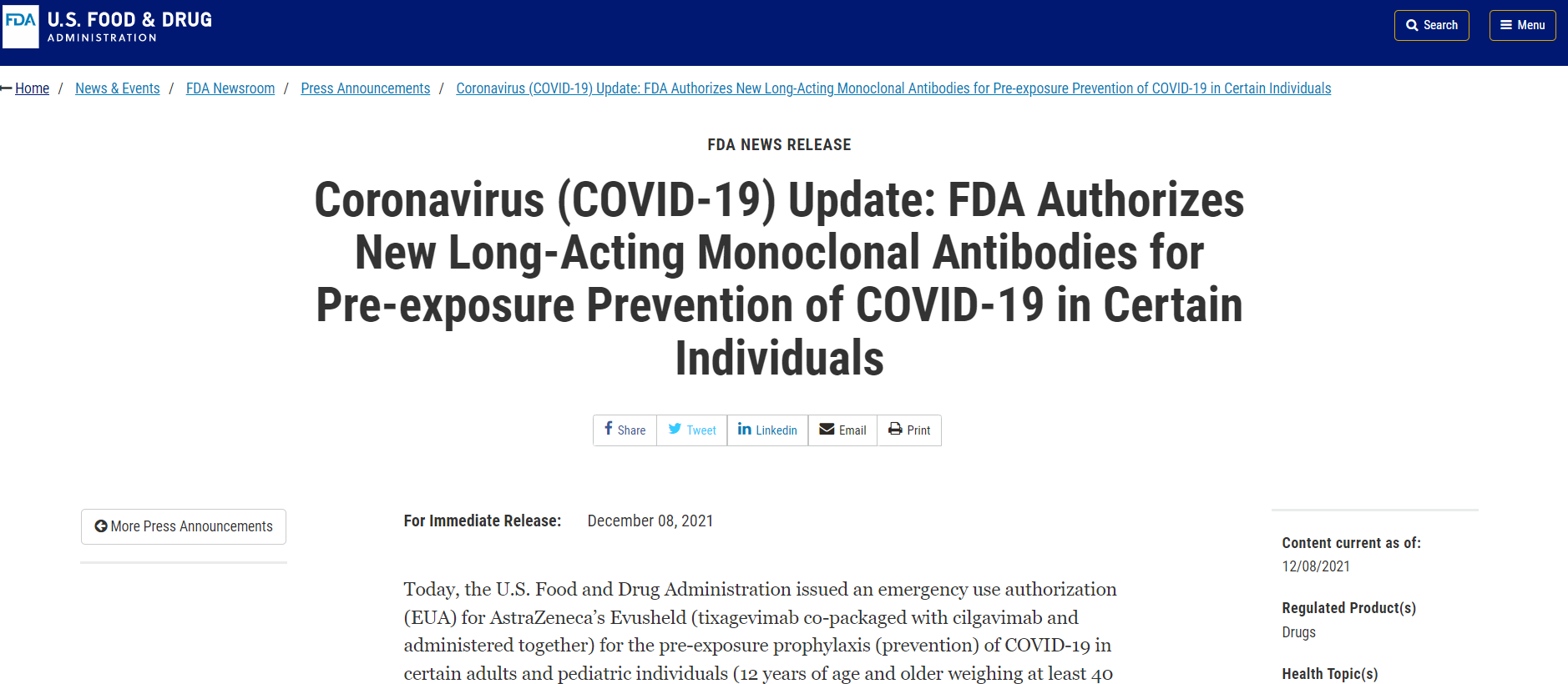 1.Coronavirus (COVID-19) Update: FDA Authorizes New Long-Acting Monoclonal Antibodies for Pre-exposure Prevention of COVID-19 in Certain Individuals
