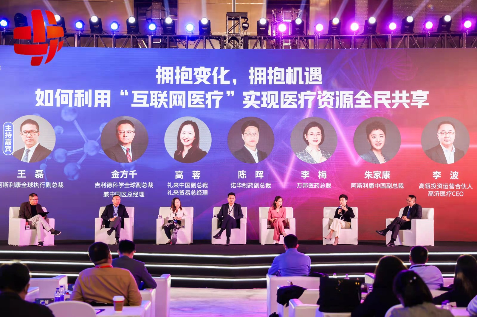 上海市静安区区长王华,高瓴创始合伙人、联席首席投资官、高济医疗董事长易诺青,高瓴投资运营合伙人、高济医疗CEO李波,高瓴投资运营合伙人、高济医疗总裁牛和义,阿斯利康全球执行副总裁、国际业务及中国总裁王磊,百济神州全球总裁兼首席运营官吴晓滨,华中科技大学附属同济医院血液科主任周剑峰,上海交通大学附属胸科医院肿瘤科主任陆舜等多家国内外知名药企领导、医学行业专家、保险公司、投资伙伴等与会嘉宾齐聚一堂,讨论中国创新药领域发展现状及创新、融合趋势。
