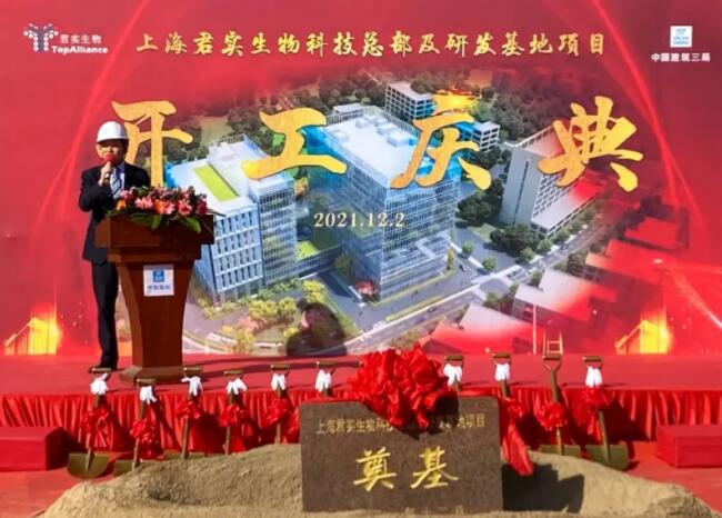 近日,君实生物全球总部和全球研发中心建设项目在张江科学城上海国际医学园区内正式启动奠基。君实生物首席执行官李宁博士、首席运营官冯辉博士、副总经理张卓兵、首席质量官王刚博士及副总经理马骏等领导出席奠基仪式,共同为项目奠基培土。
