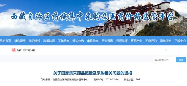 12月14日,西藏自治区药械集中采购及医药价格监管平台发布《关于国家集采药品报量及采购相关问题的通报》,奥氮平、维格列汀、普芦卡必利、西酞普兰、匹伐他汀、盐酸达泊西汀、阿哌沙班这7个品种在一些医疗机构采购为零,共涉及15家医疗机构,这些医疗机构被医保局点名通报,并被要求及时采取有力措施进行整改。