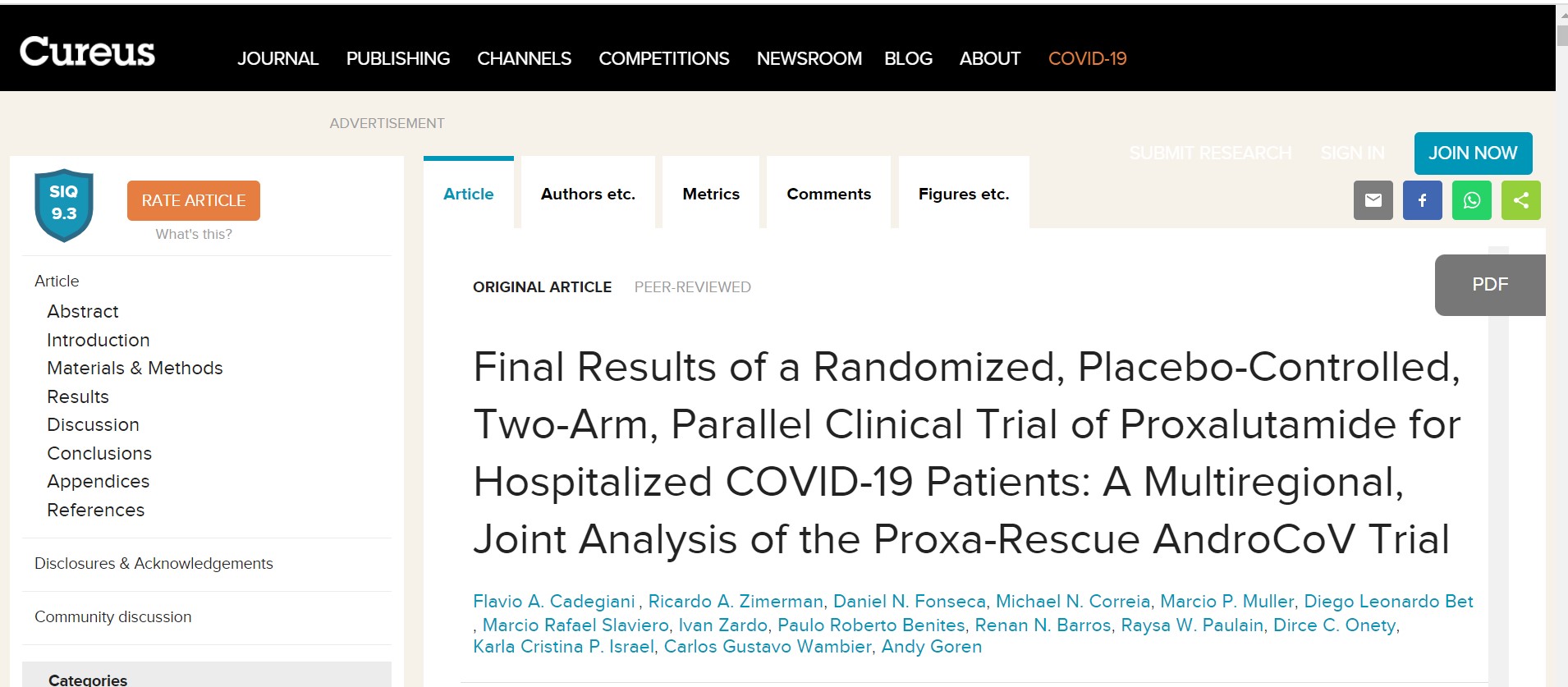 普克鲁胺治疗重症新冠患者这项试验的亮眼结果也在国际科学杂志《Cureus》上发表。这项研究在该杂志评估的所有细项中都获得了最高评分,也成为《Cureus》历史上评分最高的临床研究。