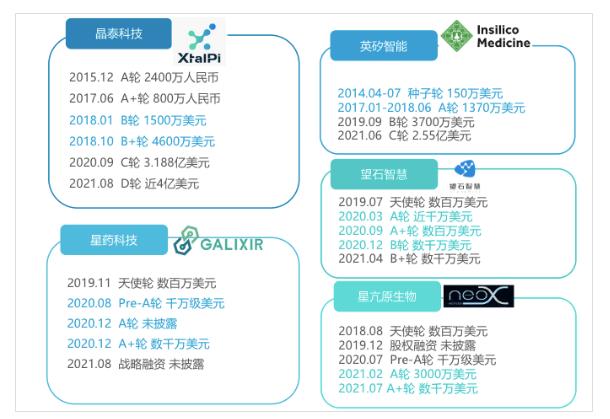 部分AI制药公司融资情况