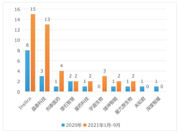 AI制药公司与药企合作披露数量