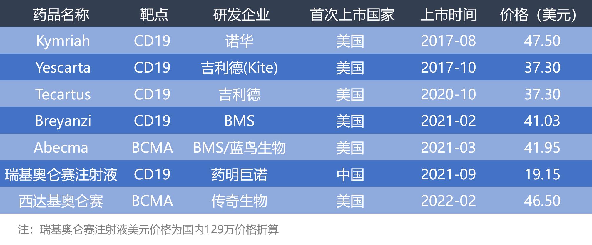 已上市CAR-T产品一览