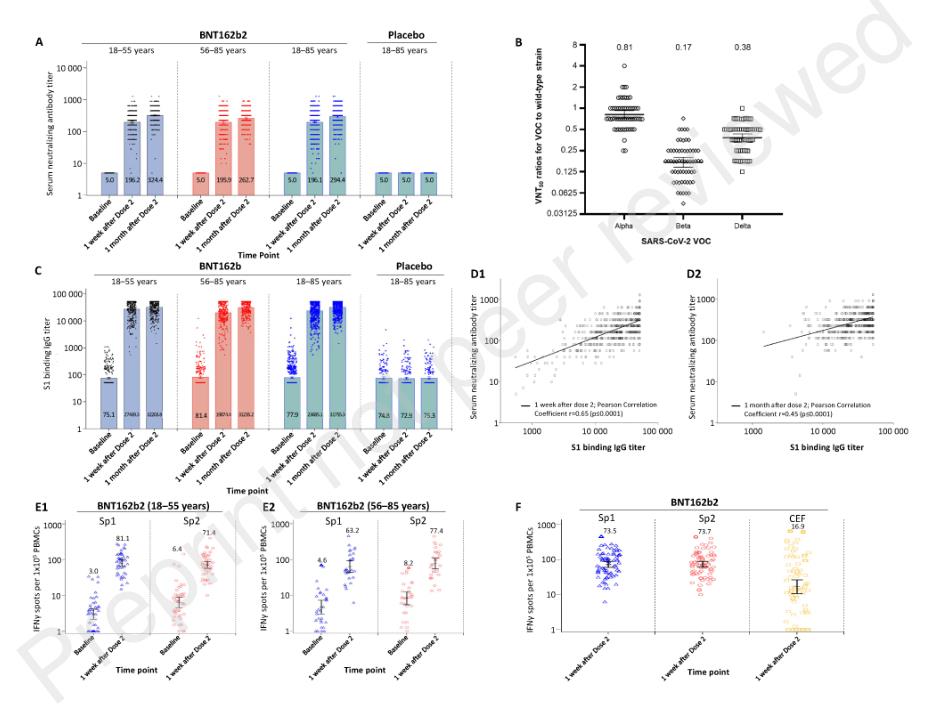 这项试验的主要目的是描述中国健康受试者在BNT162b2预防性疫苗第2剂接种1个月后的体液免疫应答,次要目的包括:观察直至研究结束,中国健康受试者接种BNT162b2的体液免疫应答;在每次接种后7天和14天内,观察间隔21天给予BNT162b2或安慰剂的安全性和耐受性特征;观察直至研究结束,BNT162b2在中国健康受试者中接种的安全性。