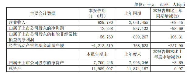 近日,康希诺披露2022年上半年度业绩报,其今年上半年实现营业收入6.3亿元,同比降69.45%;归母净利润1223.8万元,同比降98.69%;归母扣非净利润由盈转亏5676.9万元,同比下降106.31%。