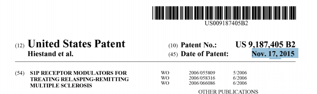 2015年12月,诺华将刚授权的US9187405专利也加入了OB,同时有其它厂家提出了IPR无效。