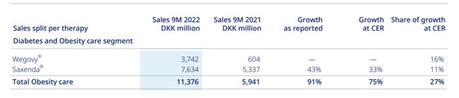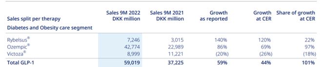 11月2日,诺和诺德发布2022年Q3财报,前3个季度总营收1288.62亿丹麦克朗(约合人民币1243亿元),净利润419.3亿丹麦克朗(约合人民币404亿元)。一众产品中司美格鲁肽系列表现最为亮眼,在前3个季度,皮下注射制剂Ozempic累计销售额达427.74亿丹麦克朗(约合人民币412亿元),增长率为69%;口服片剂Rybelsus销售额72.46亿丹麦克朗(约合人民币69亿元),增幅120%;减肥产品Wegovy销售额37.42亿丹麦克朗(约合人民币36亿元)。
