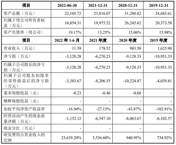 由于尚未有产品实现商业化上市,新通医药目前还处于持续亏损状态,但亏损幅度开始收窄。财务业绩数据显示,2019年—2022年上半年,新通药物实现营业收入分别约为1625.9万元、983.5万元、178.52万元及11.39万元人民币,同期对应的净利润分别约为-1.1亿元、-9128.33万元、-6270.23万元及-3120.28万元人民币。