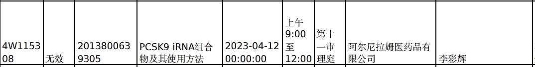 近期,国家知识产权局发布的口审公告显示,阿尔尼拉姆医药(Alnylam)旗下申请号为“2013800639305”、发明名称为“PCSK9 iRNA组合物及其使用方法”的专利被提起无效宣告请求,口审日期定于4月12日。