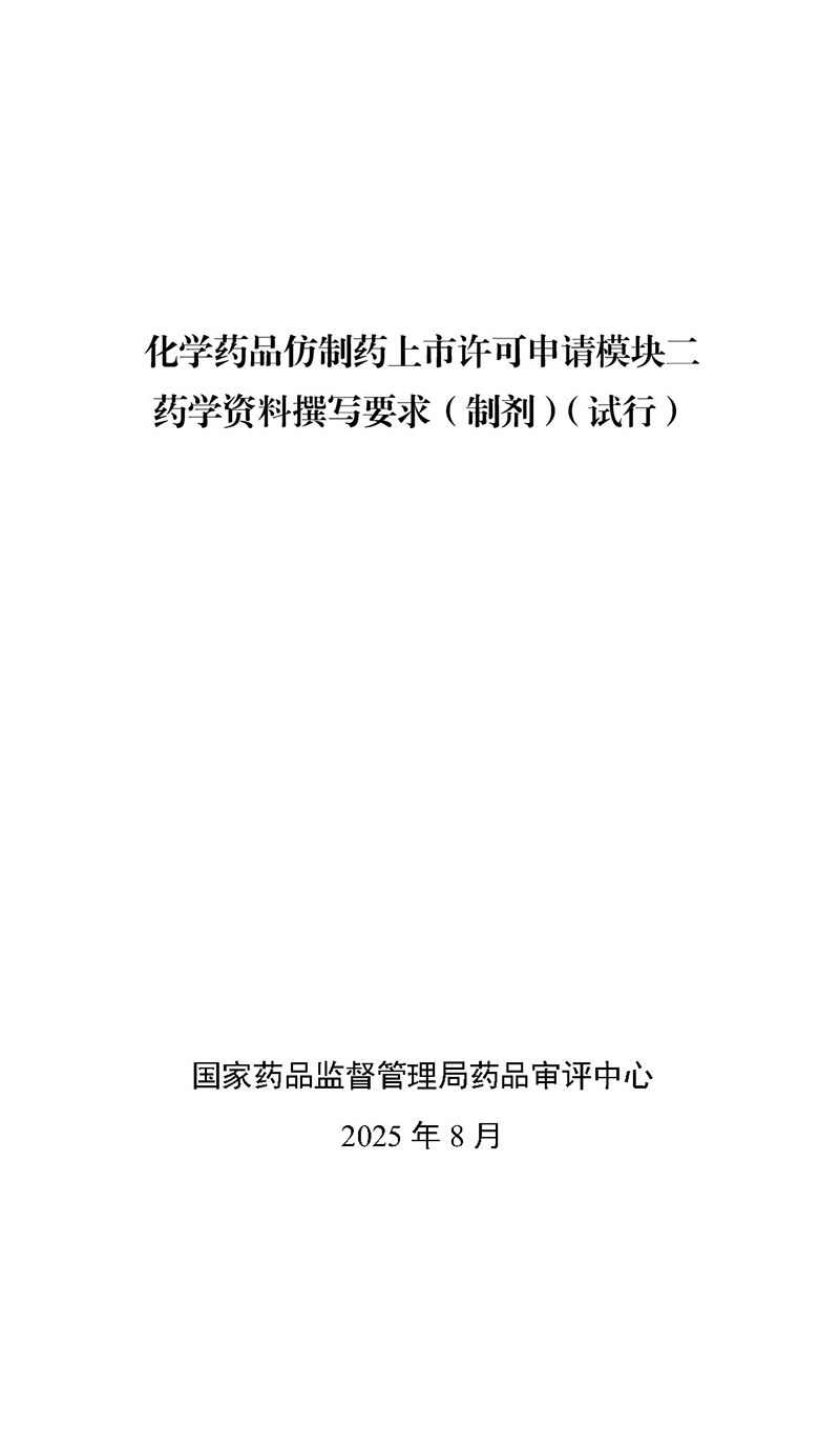 国家药监局药审中心关于发布《化学药品仿制药上市许可申请模块二药学资料撰写要求(试行)》的通告(2025年第32号)