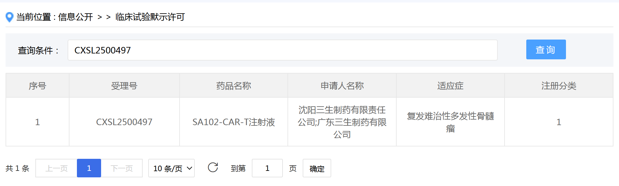 据国家药审中心官网显示,三生制药 SA102-CAR-T 注射液或批开展临床试验,用于复发难治性多发性骨髓瘤。