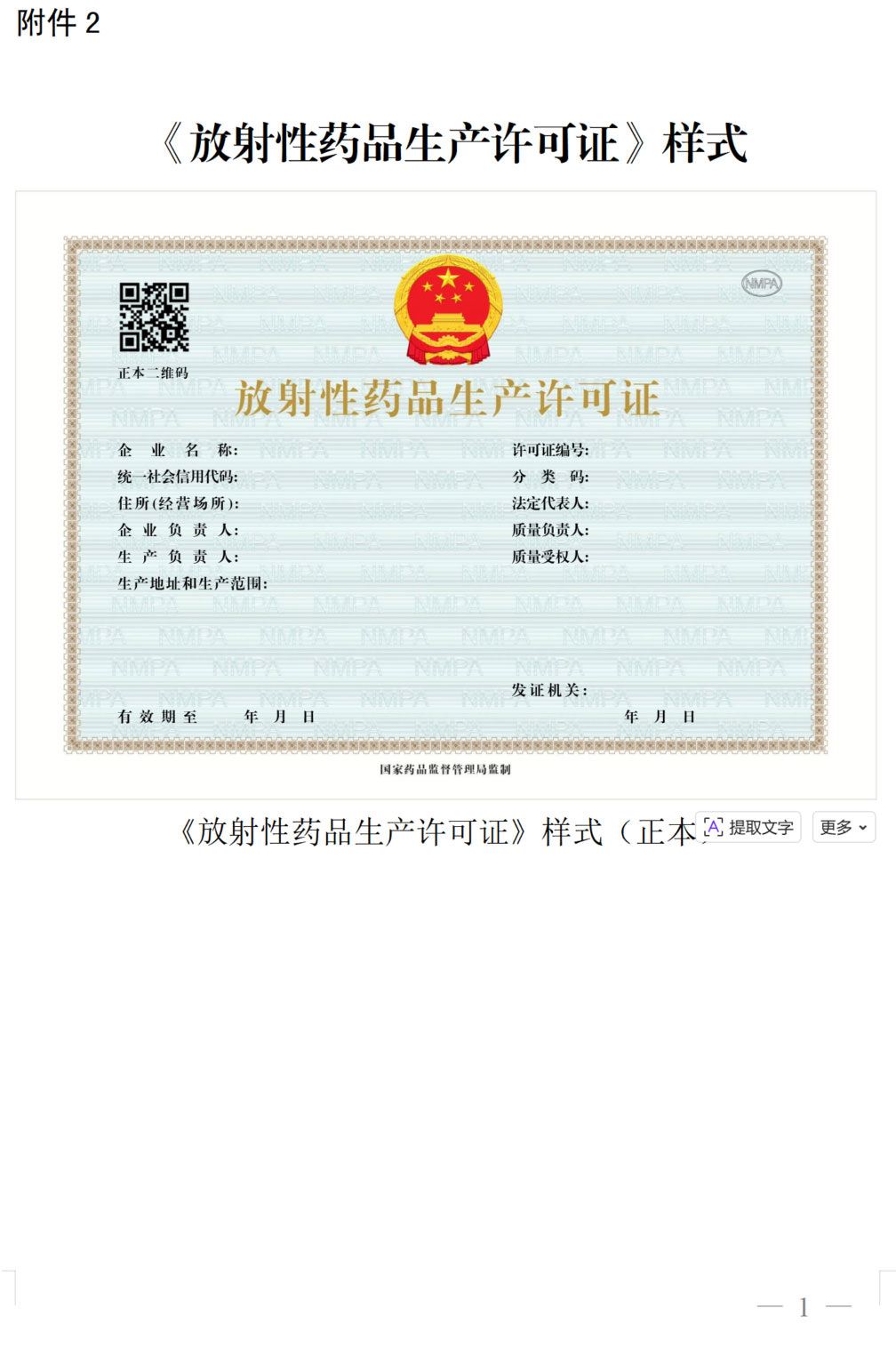 为贯彻落实《国务院关于加强数字政府建设的指导意见》(国发〔2022〕14号)有关要求,按照《国家药监局关于进一步做好〈药品生产许可证〉发放有关事项的公告》(2025年 第35号)工作部署,现统一启用新版《药品生产许可证》《放射性药品生产许可证》样式,并就有关事宜通知如下: