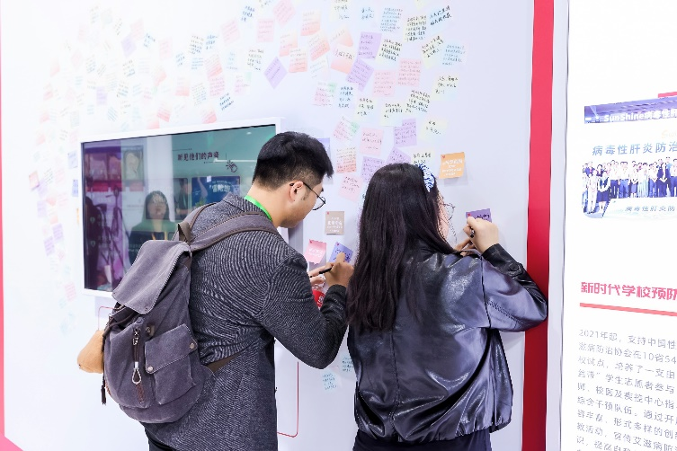 展台上,一面充满童趣的画作墙吸引了众多目光。这幅画作由山西临汾红丝带学校的HIV感染儿童所作,描绘了他们对于未来多姿多彩的梦想。自2020年起,吉利德持续提供慈善捐款,让山西临汾红丝带学校满足用药条件的HIV感染学生得以接受创新药物的治疗和定期的身体检查,更好地学习和生活,目前,已有55位学生因此受益。同时,吉利德还积极携手媒体、行业专家、卫生机构、学协会等社会各方,广泛开展持续性的疾病认知宣传,传递正确的艾滋病防治知识,帮助消除社会歧视,创造一个更友善的社会环境。