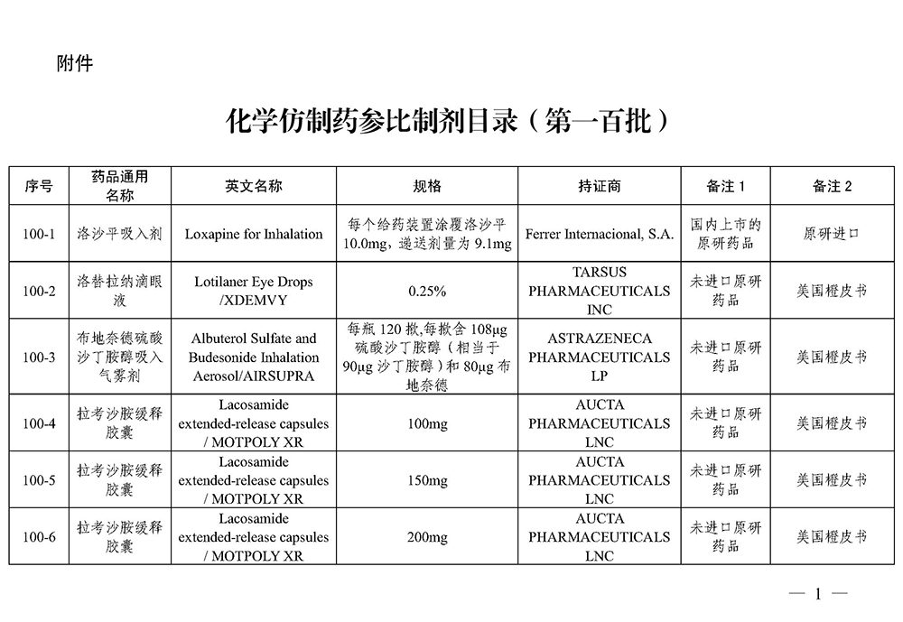 经国家药品监督管理局仿制药质量和疗效一致性评价专家委员会审核确定,现发布仿制药参比制剂目录(第一百批)。