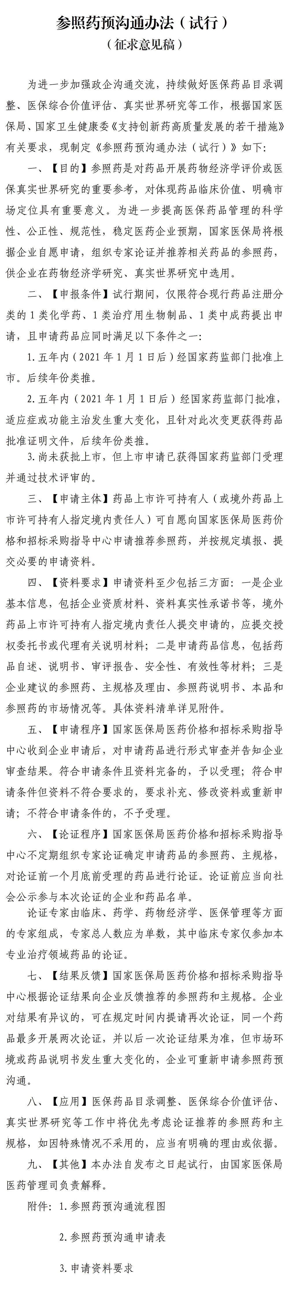 资讯 创新药研发上市销售的重要考量,国家医保局发布《参照药预沟通办法(试行)》(征求意见稿)
