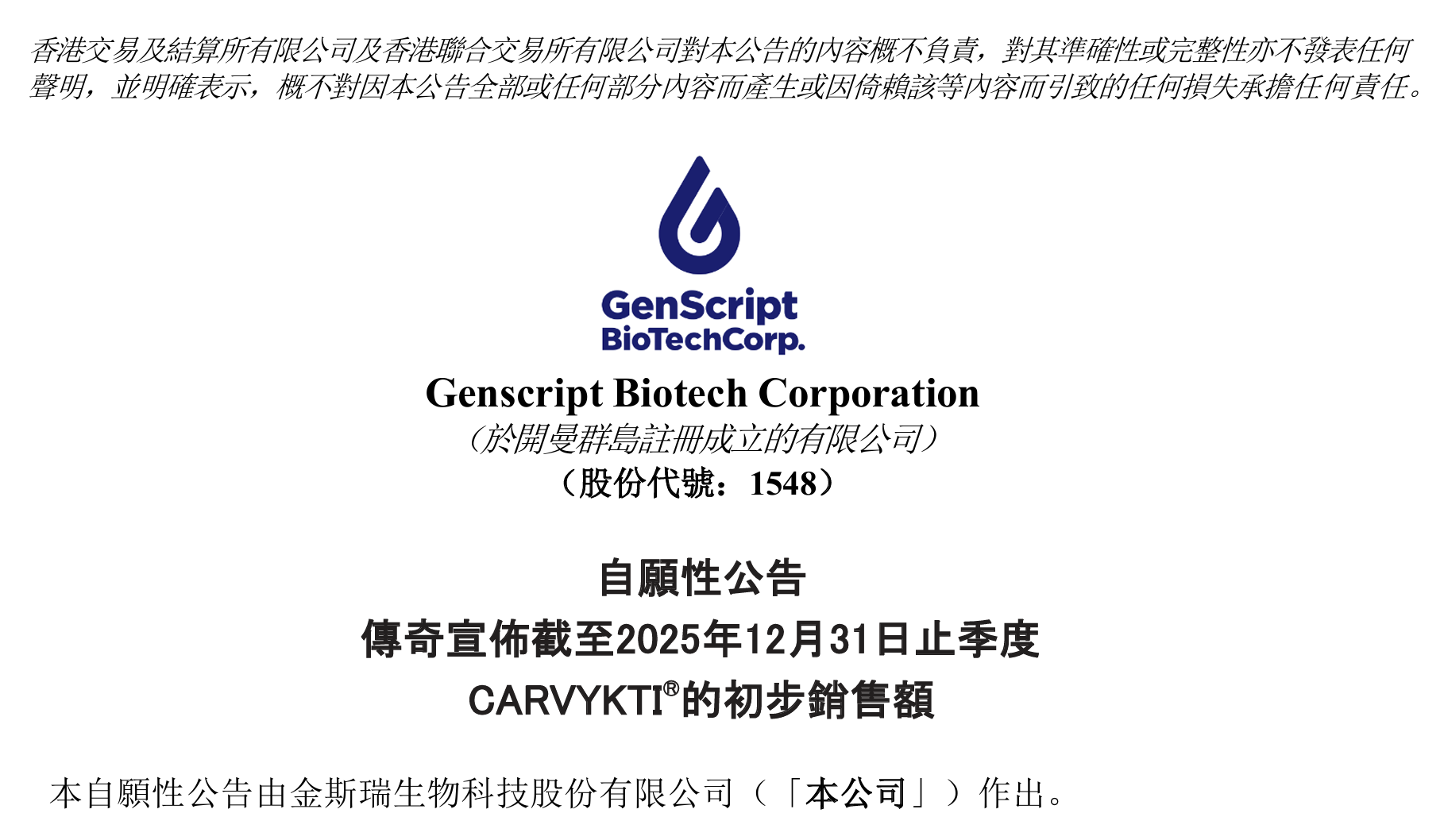 1月21日晚间,港股上市企业金斯瑞生物发布公告,传奇生物披露CARVYKTI于截至去年12月31日止第四季度贸易销售净额约5.55亿美元。该集团指,贸易销售净额乃基于杨森向传奇提供的资料,传奇与该集团均未独立核实该销售数字的准确性。