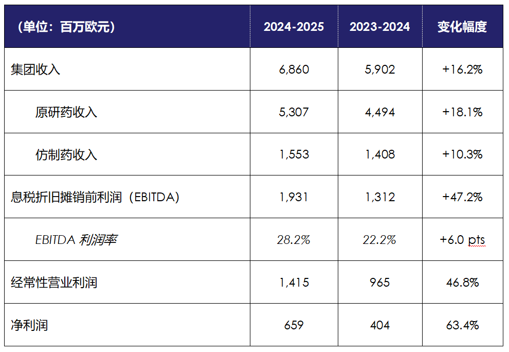 1月27日,全球知名跨国药企施维雅集团正式公布了2024-2025财年的财务业绩。施维雅集团2024-2025财年的合并收入达69亿欧元,超额完成60亿欧元的目标。较上一财年增长16.2%,显现出施维雅集团强劲的增长势头以及为患者提供更多治疗选择的能力。