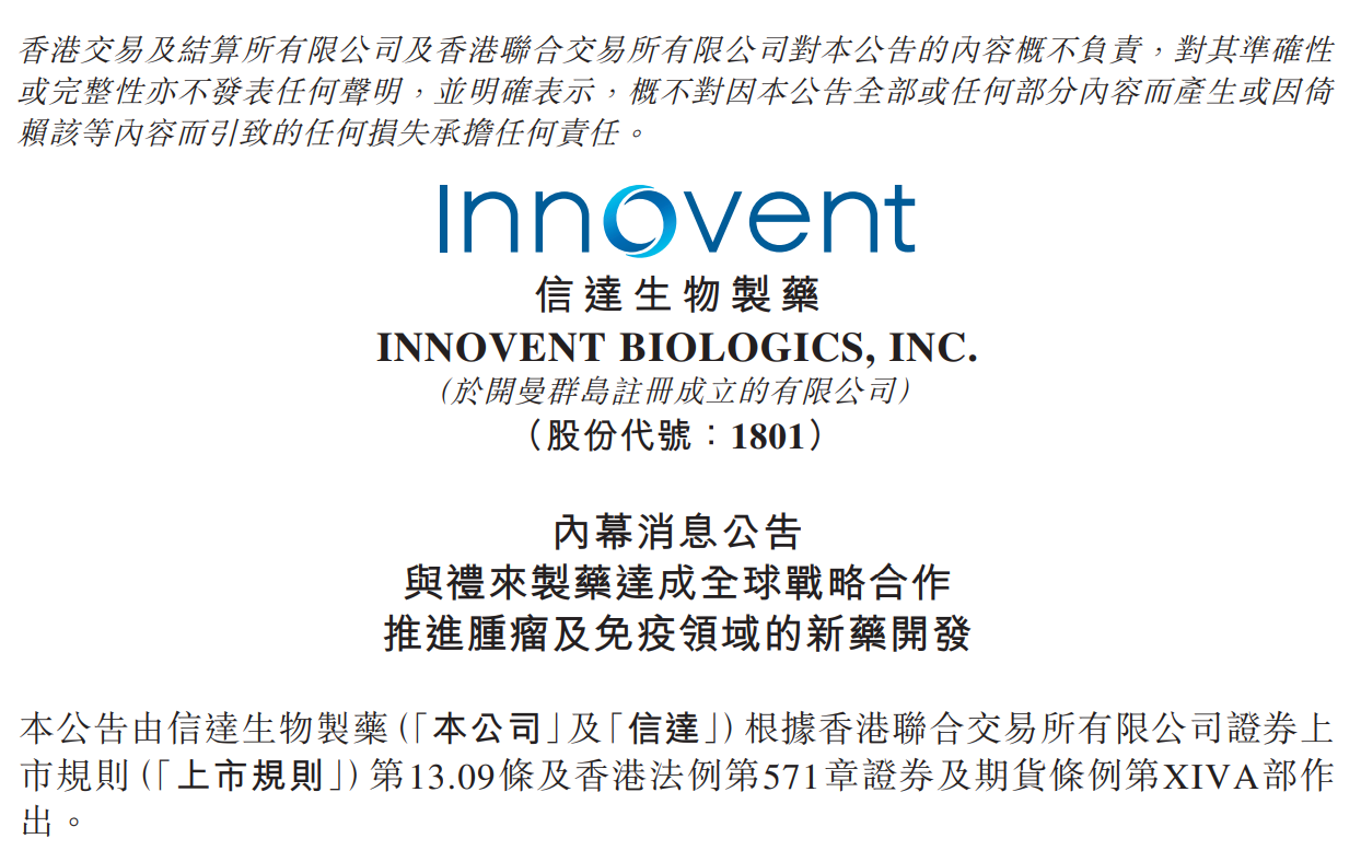 根据合作协议,双方将发挥互补优势,加快推进创新药物的全球研发工作。信达生物依托自身成熟的抗体技术平台及高效的临床能力,将主导相关项目从药物发现至中国临床概念验证(二...