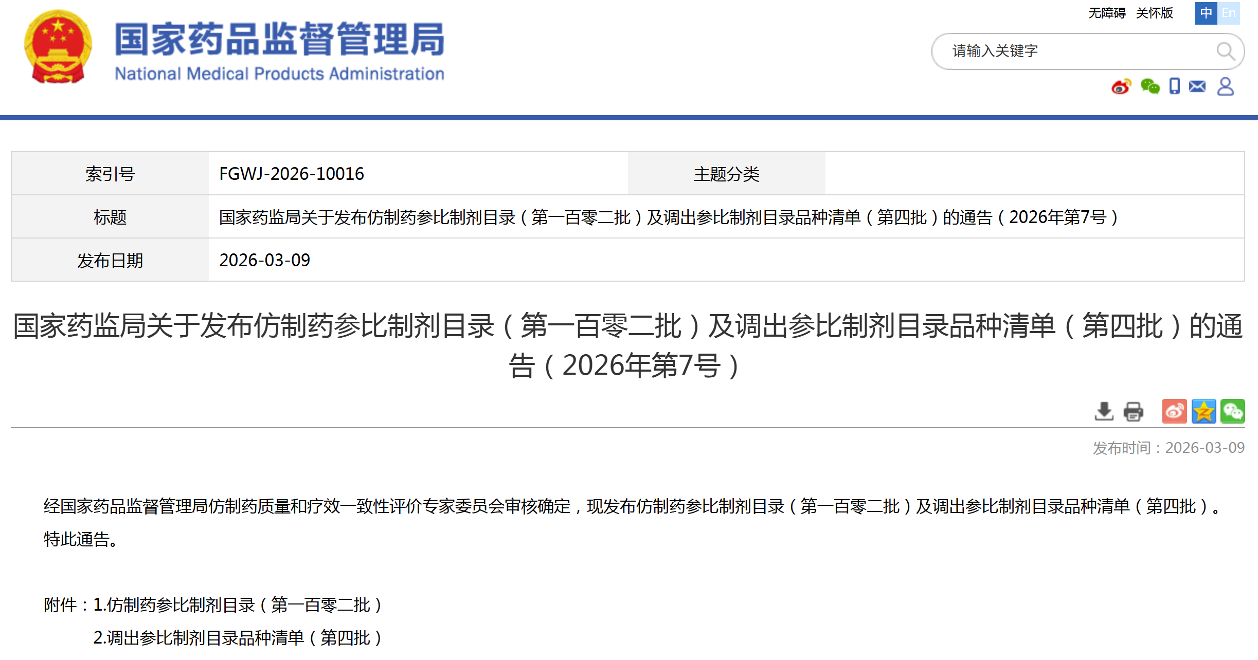 截至目前,国家药监局共发布三批调出参比制剂目录品种,并涉及10个品种。